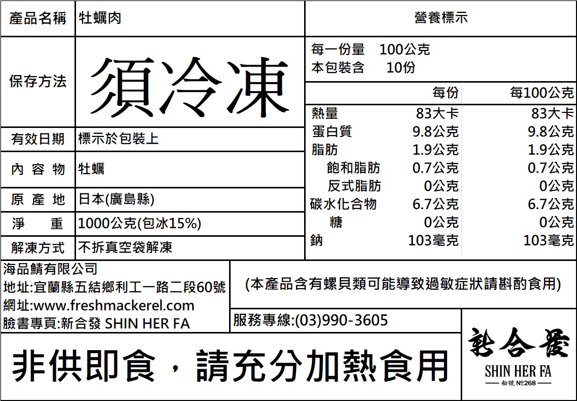 【注意事項:】(本產品含有蚌類可能導致過敏症狀請斟酌食用)
