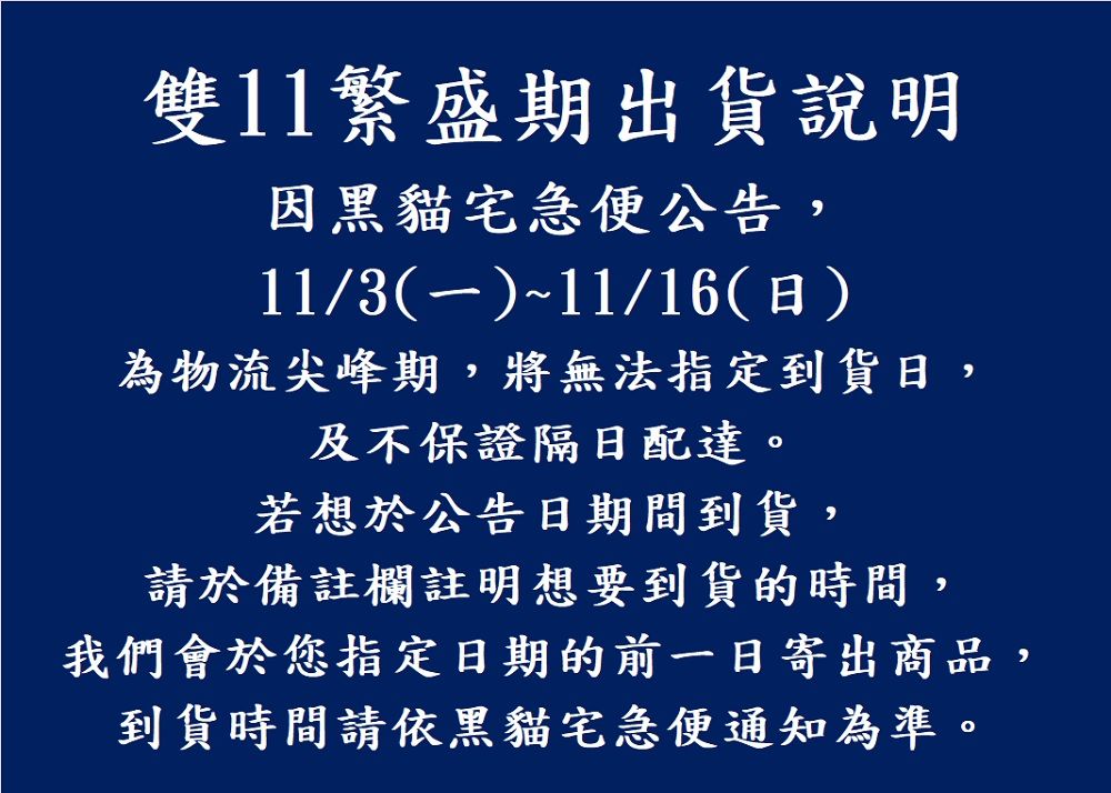系統於每日中午 12 時結算訂單,12 點後成立之訂單將無法指定隔日配達,還請見諒。
