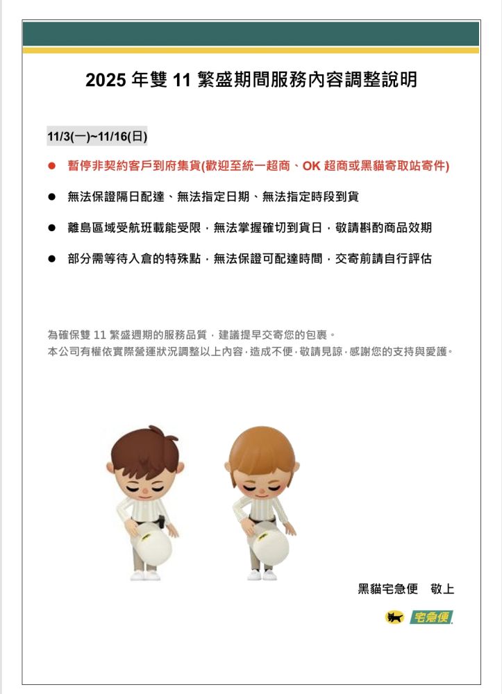 國定假日及例假日成立的訂單,將延至星期一或假日後一天處理。