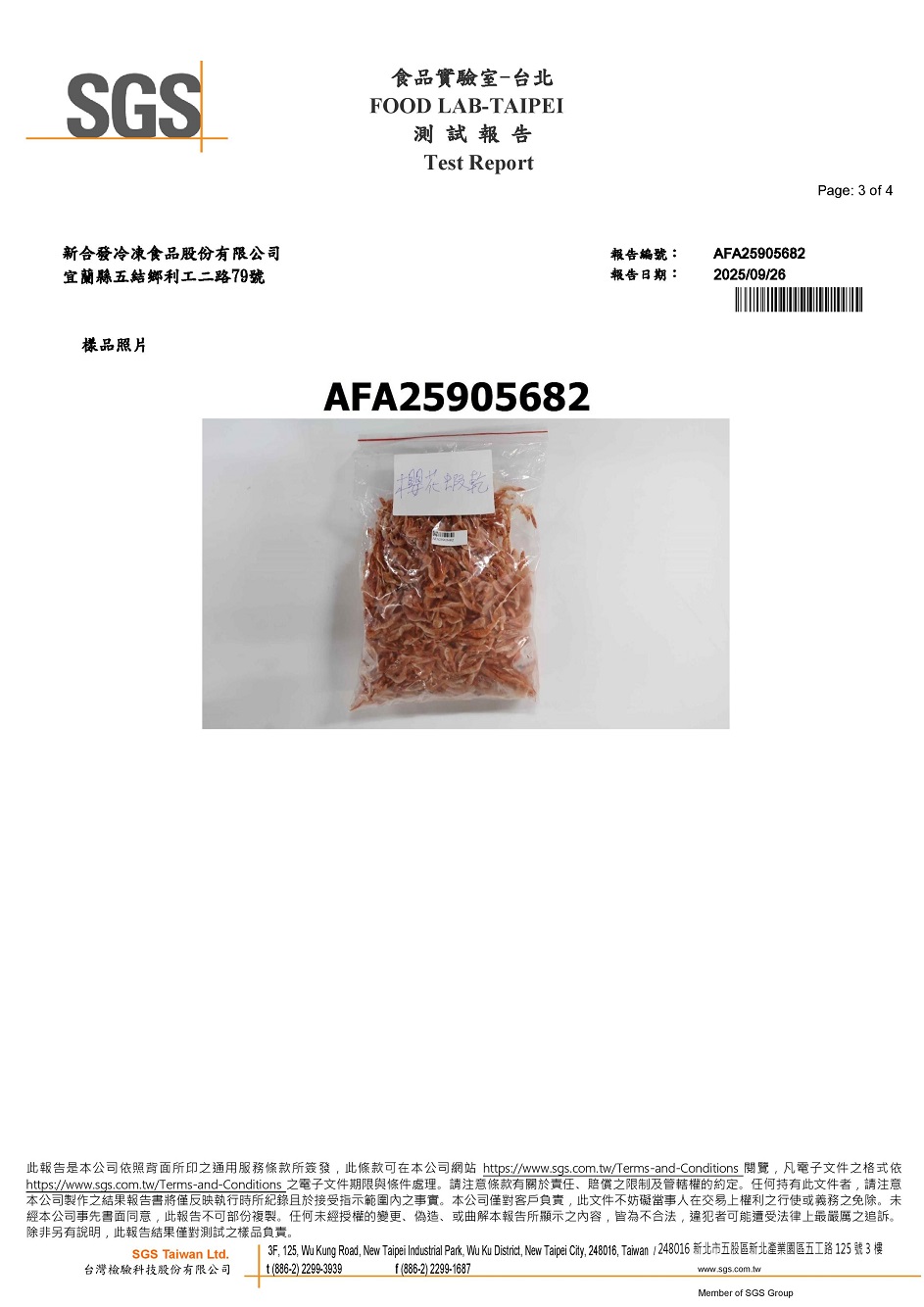 3.自主送檢驗管理,此批櫻花蝦乾檢驗項目為:微生物檢測及酸類防腐劑檢驗。
