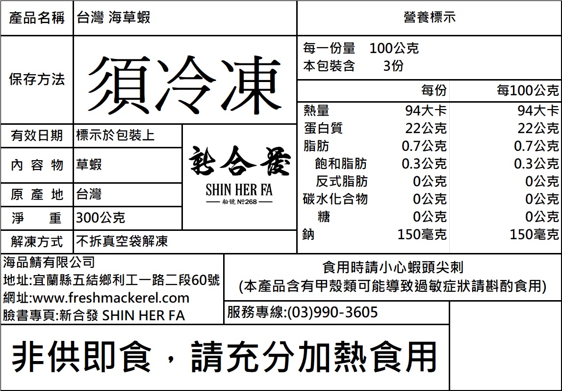 備註:每包海草蝦大小、尾數不一,但每包實重皆達300克重以上(不含冰重)。