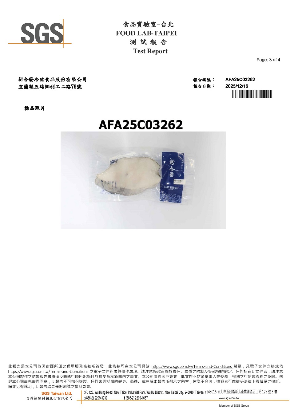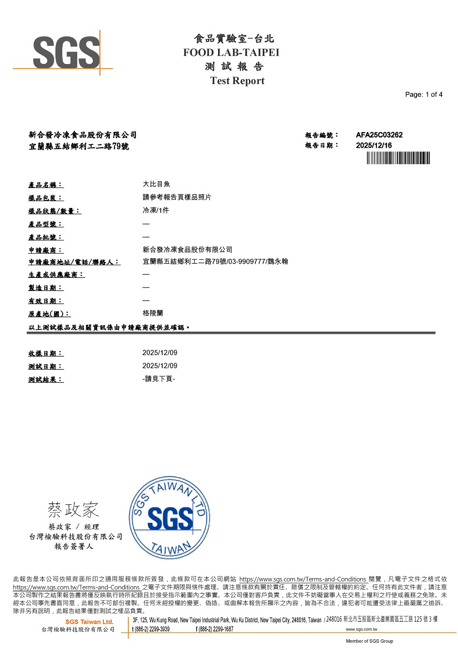 3.自主送檢驗管理,此批大比目魚檢驗項目為:水產品重金屬及甲機汞檢驗。
