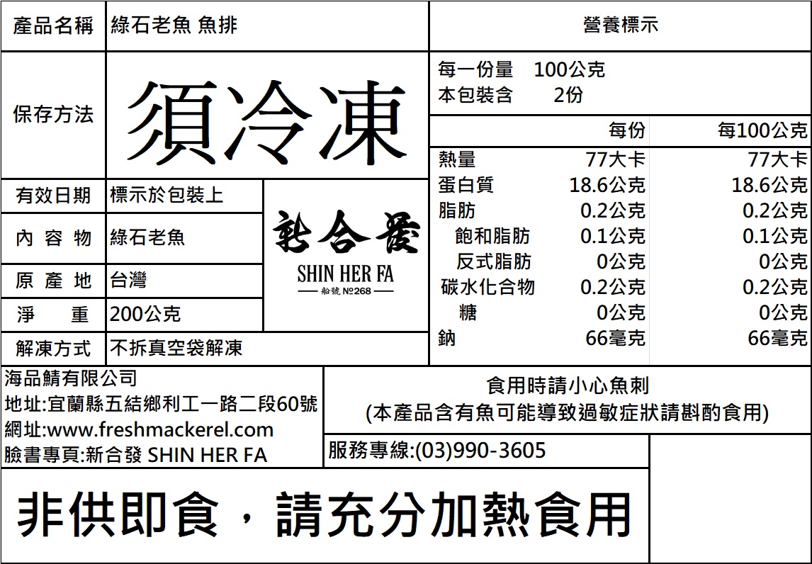 【商品:】綠石老魚 魚排