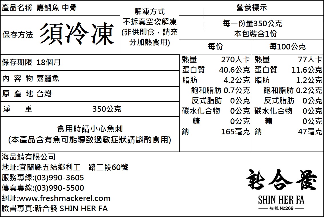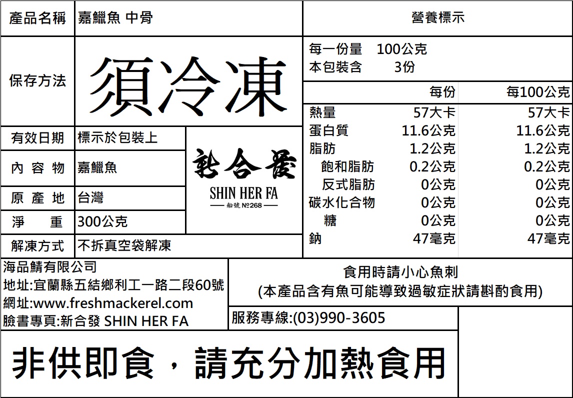 【注意事項:】食用時請小心魚刺。(本產品含有魚可能導致過敏症狀請斟酌食用)