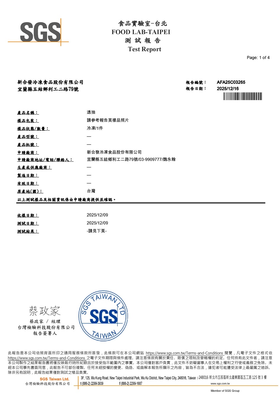 4.自主送檢驗管理,此批透抽檢驗項目為:水產品重金屬及甲機汞檢驗。