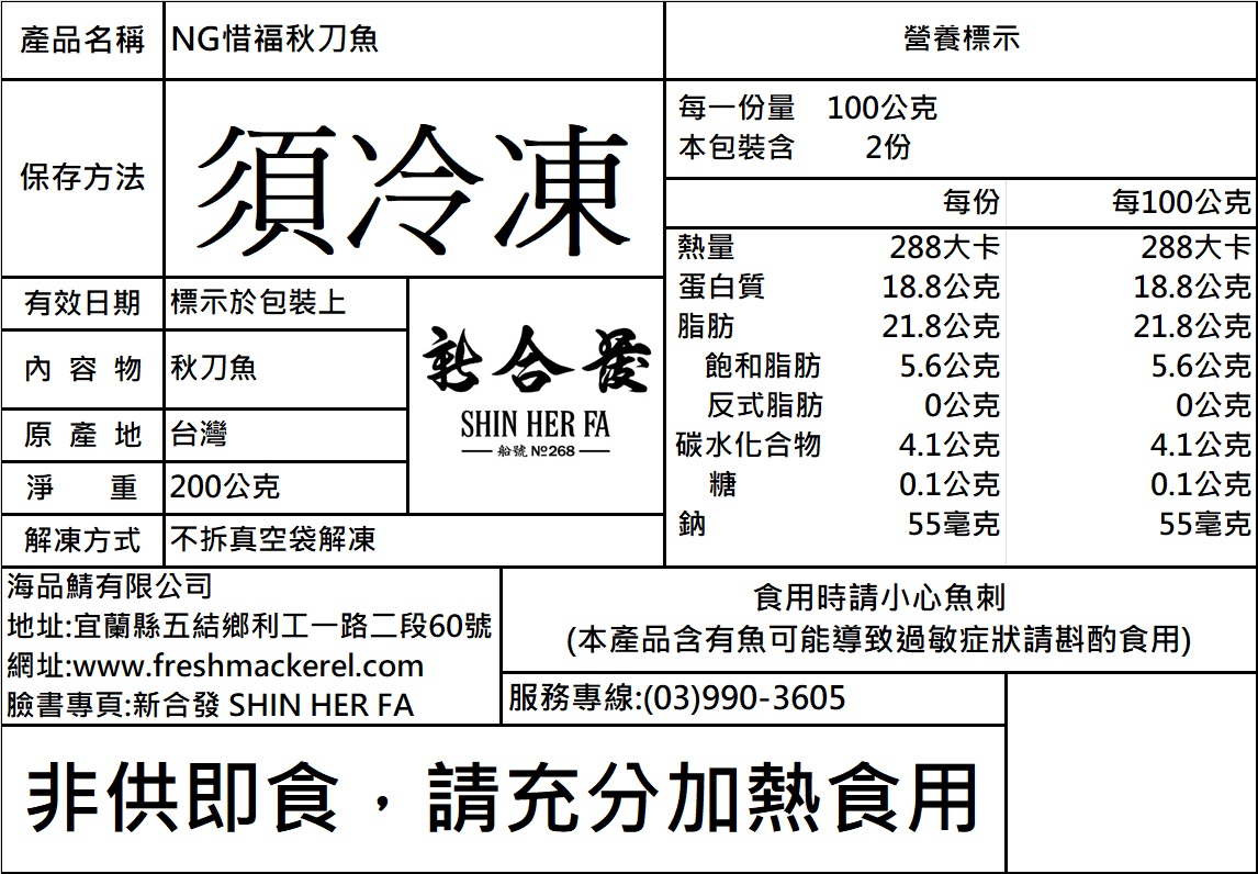 【商品:】NG惜福秋刀魚