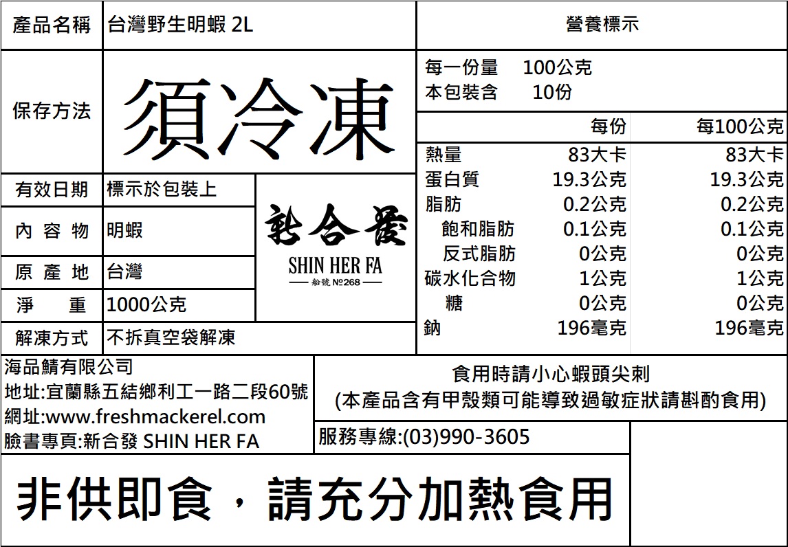 【商品:】台灣野生大明蝦